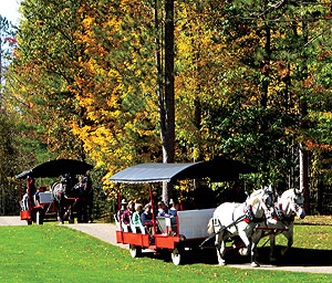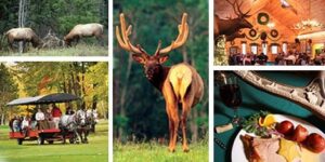 *Step back in time to life on the frontier as you board a horse-drawn carriage that will take you away from the daily hustle and bustle of modern living. Cross the wooden bridge over the Thunder Bay River and into the Elk Preserve for an up-close look at majestic bull elk. Enjoy the scenery, the smell of pine, and the scenic river as the horses make their way deep in the woods to the charming Elk Antler Log Cabin.